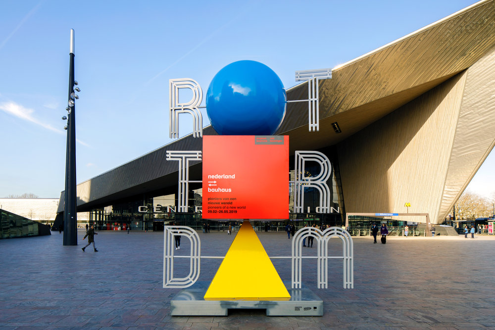 Rotterdam is bij uitstek de stad om 100 jaar Bauhaus te vieren. Het Bauhaus is de revolutionaire ontwerpschool uit Duitsland die tal van kunstenaars, architecten en vormgevers heeft gevormd en beïnvloed. In Rotterdam zijn in het stadsbeeld verschillende voorbeelden van het Bauhaus te vinden, zoals de Van Nellefabriek of De Kiefhoek in Feyenoord. Boijmans reist tijdens de Bauhaus-tentoonstelling door de stad met een fotogenieke RTTRDM-sculptuur. Momenteel staat deze metershoge windvaan in Bauhaus-kleuren voor het Centraal Station. Gedurende de tentoonstelling reist het door naar het plein voor de Markthal en het Schouwburgplein.