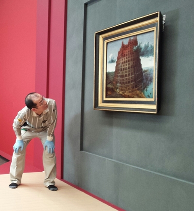 Zoals de titel al aangeeft, staat De toren van Babel (1563-1564) centraal. Dit internationaal beroemde kunstwerk is zeer populair in Japan. In samenwerking met Tokyo University of the Arts wordt een enorme reproductie van het kunstwerk getoond, plus een 3D-animatie. Conservator oude kunst Friso Lammertse: ‘Tijdens de voorbereidingsperiode kregen we veel Japanners over de vloer. Wat me opviel, is dat ze op een andere manier naar het schilderij kijken. Ze nemen de toren als bestaand object, willen weten hoe hoog hij in werkelijkheid is en hoe hij er in voltooide staat uit zou zien.’ Japanners hebben zo’n grote interesse in oude kunst uit de Nederlanden dat het Tokyo Metropolitan Art Museum waar de tentoonstelling op 18 april opent een zeer grote toestroom van belangstellenden verwacht, vergelijkbaar met die aan de Jheronimus Bosch-tentoonstelling in 2016. De organisator heeft speciaal voor de tentoonstelling een website in het leven geroepen (http://babel2017.jp) en een Twitteraccount (@2017babel).