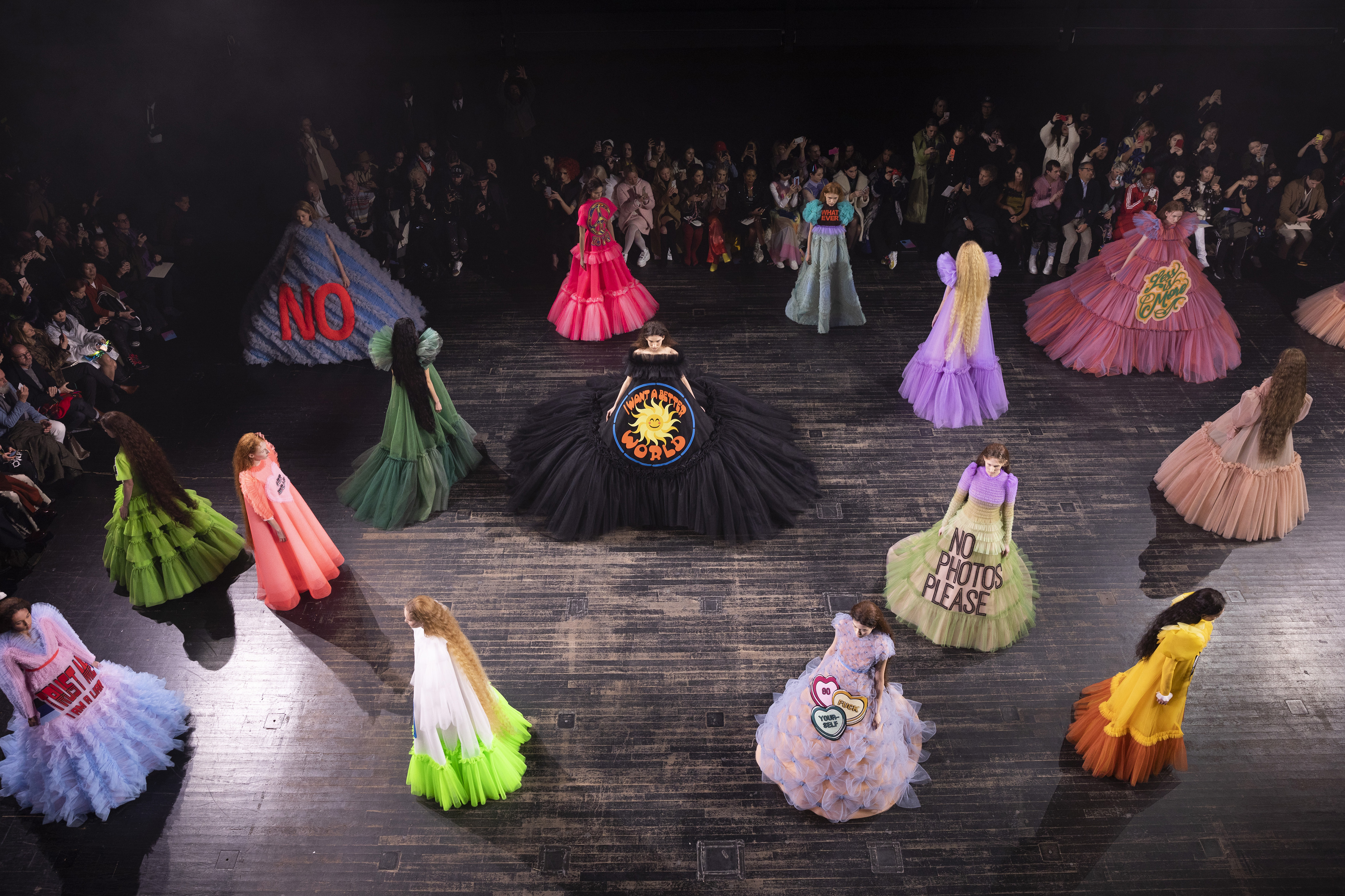 De jurken zijn groots maar luchtig, met transparante ruches en strikken. De kleurrijke collectie is volledig uitgevoerd in 8 kilometer tule. De silhouetten, sculpturaal en extreem, variërend van verschillende A-lijnen tot zandloper, zijn scherpzinnig expressief: elke jurk vormt de achtergrond voor een tekst die wordt uitgevoerd in lagen van uit laser gesneden tule. Deze teksten zijn voornamelijk oneliners: slogans net als onderschriften van sociale media of t-shirts voor souvenirs. De nevenschikking van deze schijnbaar niet-gerelateerde elementen resulteren in een typische Viktor & Rolf-expressie van surrealistisch schoonheid.